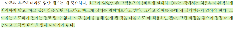 이 책을 읽게 된 이유는 지금 내가 하고 있는 것이 잘하고 있는것인지 확인하고 싶었기 때문이다.